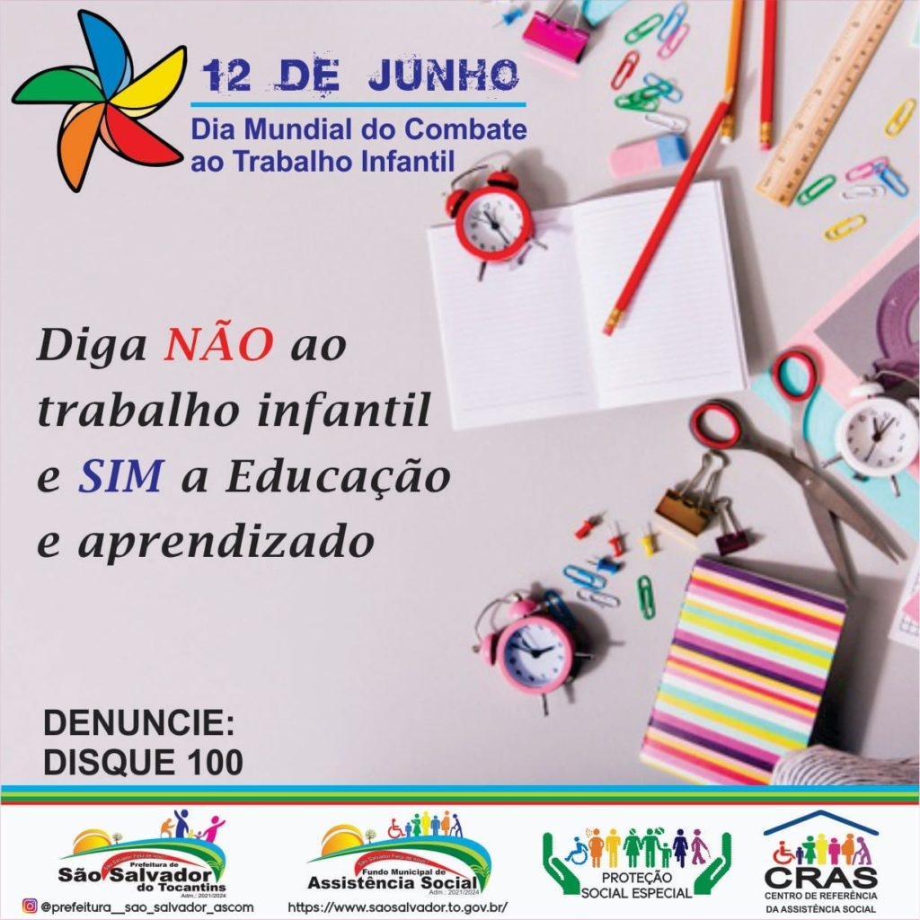 12 DE JUNHODia Mundial do Combate ao Trabalho InfantilTODOS JUNTOS CONTRA O TRABALHO INFANTILDENUNCIE: DISQUE 100