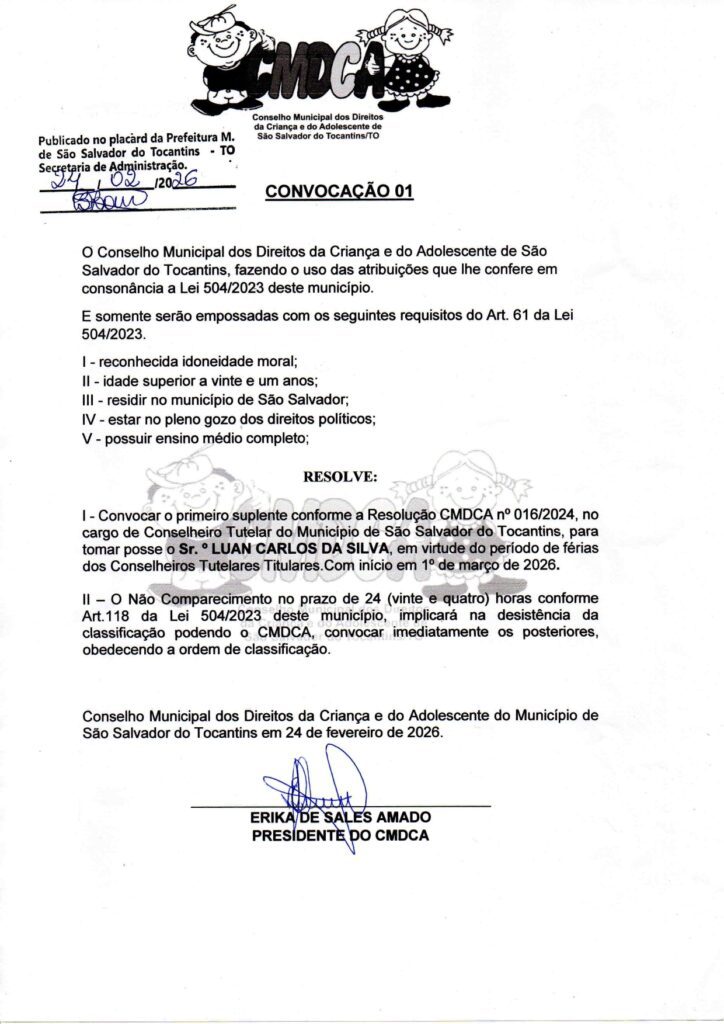 CMDCA – CONVOCAÇÃO 01Baixar